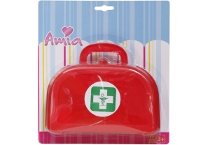 Doktorkoffer 17teilig ab 3 Jahren. Inhalt: z. B. Stethoskop, Spritze, Fieberthermometer und weiteres zahlreiches Zubehör.