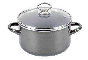 Fleischtopf Primus, Durchmesser: 24cm, Höhe 12,5 cm. Füllmenge: 5,6 Liter. Mit Diamant-Glasur-Clean. Praktischer, gerundeter Rührboden und Klarsicht-Glasdeckel. Hitzebeständig und bruchsicher. Vollkontakt-Thermoboden mit Antihaft-Eigenschaft.