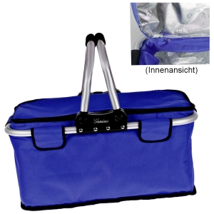 Genius Thermo-Einkaufskorb Alu blau. Material: 100% Polyester, Aluminium. Maße: ca. 48 x 28 x 27 cm (aufgefaltet). Füllmenge. ca. 26 kg. Mit 2 Alu-Tragebügel mit rutschsicheren Griffen. Faltbar.