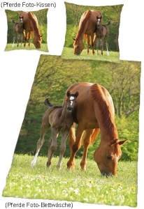 Pferde Foto-Bettwäsche und Kissen "Stute & Fohlen"