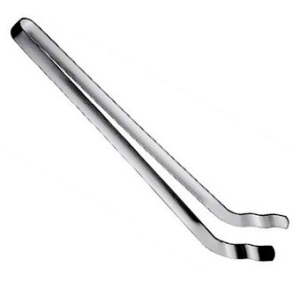 Rösle Grill-Zange gebogen. Material: Edelstahl. Länge: 35,5 cm. Mit gewelltem Enden am Vorderteil.