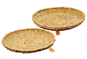 2er Set Schalen flach. Material: Seegras. Maße: Durchmesser von 45 und 50 cm.