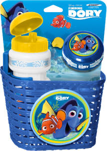 Fahrradset Findet Dorie. Füllmenge: 330 ml (Trinkflasche). Altersempfehlung: Ab 2 Jahren. Das Fahrradset besteht aus 3 Teilen: Körbchen, Klingel und Trinkflasche.