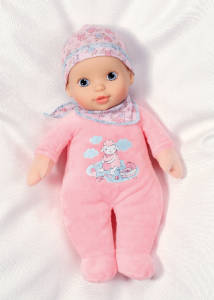 My first Baby Annabell Newborn. Material: Polyvinylchlorid (Kopf), Weichkörper (Körper). Maße: ca. 30 cm groß. Altersempfehlung: Von 0 Monate bis 3 Jahre. Sie trägt einen kuschelweichen Body, ein geblümtes Mützchen und ein schickes Halstuch. Alle Kleidungsstücke sind zum Schutz Ihres Kindes fest vernäht. In dem Weichkörper ist eine Rassel integriert. My first Baby Annabell ist die perfekte allererste Puppe für Babys.