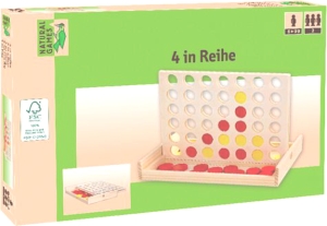 Natural Games 4 in einer Reihe. Material: Holz. Altersempfehlung: ab 3 Jahren. Für 2 Spieler. Wer als erstes 4 Plättchen in einer Reihe hat, gewinnt.