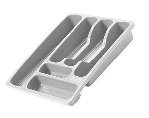 Besteckkasten. Material: Kunststoff. Farbe: grau. Maße: ca. 36 x 29 x 6 cm. Mit 6 Fächern.