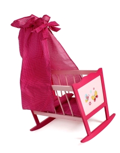 Puppenwiege Papilio. Material: Holz. Farbe: pink-rosa. Maße: ca.37 x 50 x 78 cm. Gewicht: 2,3 kg. Altersempfehlung: ab 3 Jahren.
