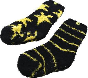 BVB-Kuschelsocken 2er-Set. Material: 98% Polyester, 2% Elasthan. Mit Anti-Rutsch-Noppen auf der Unterseite. Ein Paar Socken mit gelben Streifen und das zweite Paar mit gelben Sternen. Mit kleinem BVB Emblem oben am Rand.