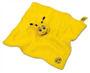 Borussia Dortmund EMMA-Schnuffeltuch. Material: 100 % Polyester. Waschbar bis 30 Grad. Mit Emmas Kopf als Kuscheltier in der Mitte.
