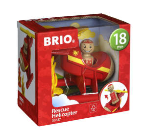BRIO Feuerwehrhelikopter. Material: Holz, Kunststoff. Farbe: rot. Maße: ca. 15,3 x 12,2 x 14,5 cm. Altersempfehlung: Ab 18 Monaten.