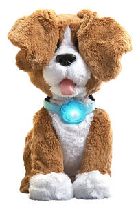 Zuwachs bei den FurReal Friends. Der verspielte Beagle Benni kann die Ohren bewegen und reagiert mit fröhlichem Wau-Wau und Wuff-Wuff auf Geräusche und Berührungen. Doch was hat er gebellt? Damit sein Besitzer ihn versteht, trägt Benni ein leuchtendes Halsband, das sein Gebell übersetzt. Mit mehr als 80 Sätzen sorgt Benni für jede Menge FurReal Friends Spaß. Inklusive Batterien. Alter ab 4 Jahren.